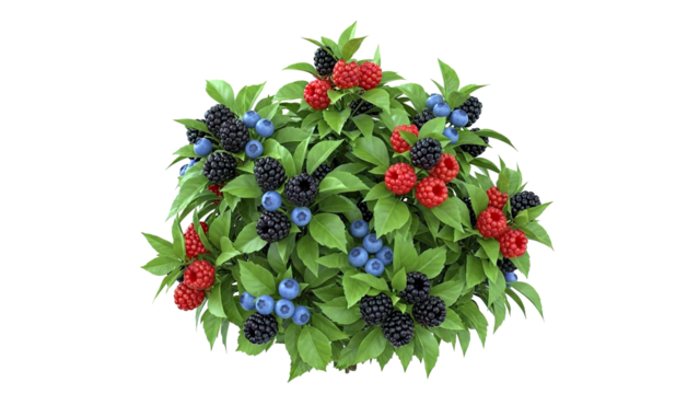 Mixed Berry Bush with Blackberries, Blueberries, and Raspberries