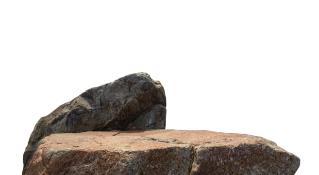 Brown rock stone podium isolated on white background. Natural granite stone pedestal for product display. Organic rock stage with rough texture for branding placement and montage presentation.