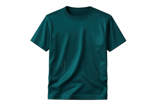 Teal t-shirt mockup with short sleeves, round collar, and transparent background, ideal for showcasing designs and logos