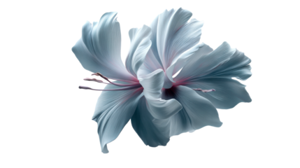 A sleek white heavy-lift cargo jet airplane with metallic light blue accents, banking left mid-flight against a pristine bright white background with copy space, concept of global air logistics.