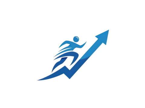 Dynamic business growth logo design concept isolated on transparent background. Person running upward arrow