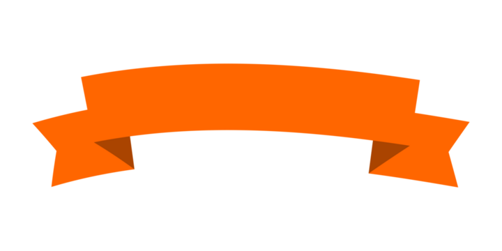 Orange ribbon banner label with folded ends. Flat promotional header design for sale, offers, branding, and marketing graphics