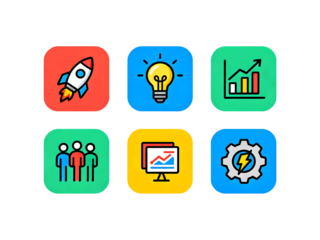 Innovation Icons: A vibrant collection of modern icons encapsulates key concepts of business strategy. Icons such as rocket, lightbulb, chart, and gears, representing the spirit of growth.
