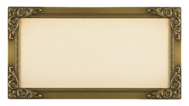 Isolated object antique ornate bronze frame holding blank paper for luxury branding design.