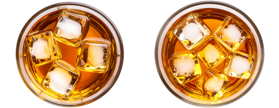 Top View of Whiskey Glass with Ice Cubes Isolated on Transparent Background PNG