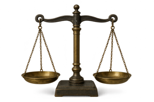 Classic brass balance scale representing justice and equality