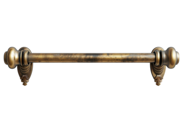 Antique brass towel bar with ornate details against a for bathroom decor ideas on transparent background