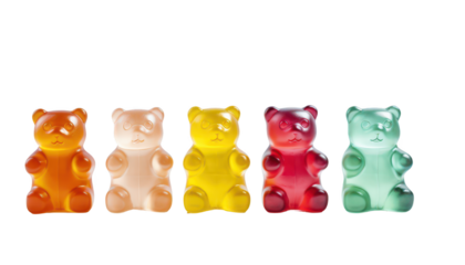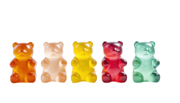 Multicolor collection of jelly gummy bears isolated on transparent background