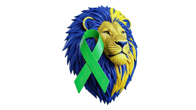 Lion Head with Green Awareness Ribbon