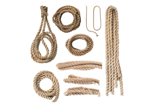 Set of ropes in different state isolated on transparent background. Transparent PNG.