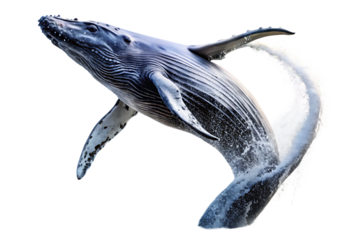 Humpback whale breaching in ocean waters marine life photographic viewpoint isolated on transparent background
