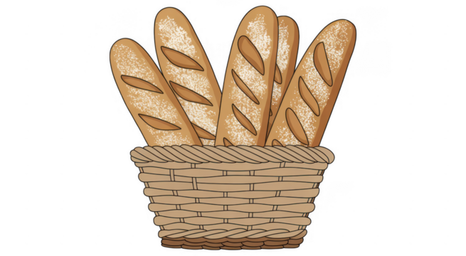 breads in a basket illustration, transparent background, PNG.