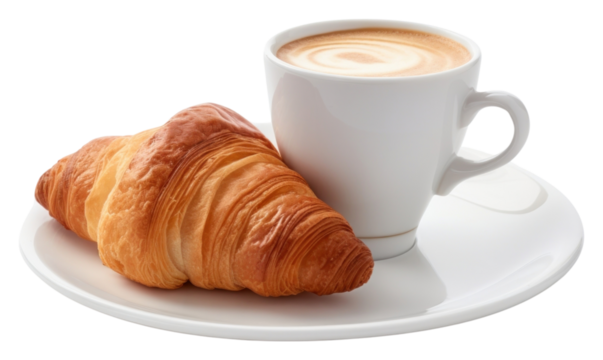 PNG A cup of coffee with croissant bread drink food.