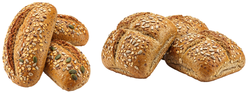 Variety of Bread Rolls Isolated on a Transparent Background
