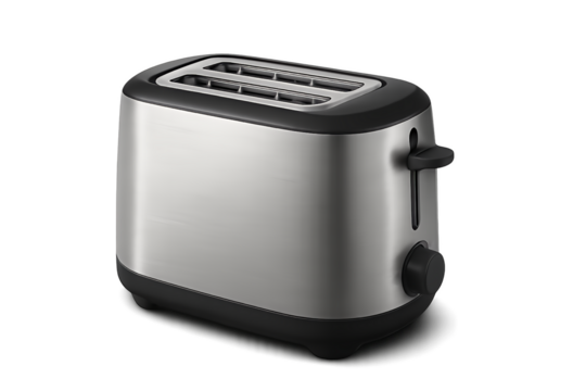 A silver and black twoslice toaster isolated on transparent background