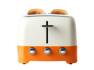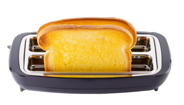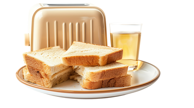 A toaster with four slices of bread toasting to golden perfection on transparent background