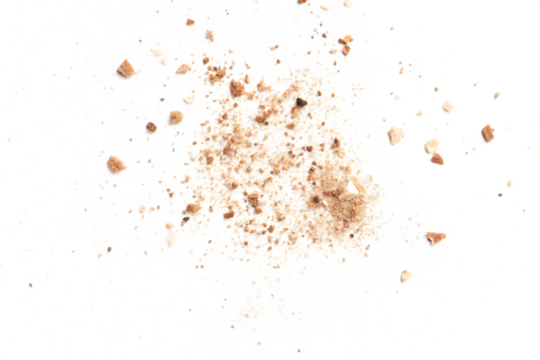 cookie crumbs scattered on white transparent background