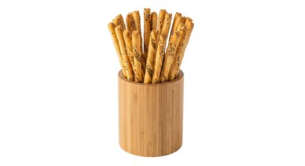 Crispy grissini breadsticks on white background, delicious Italian snack food, crunchy thin breadsticks isolated for culinary use