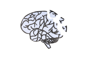 Brain cutout design with crack for challenges, isolated on white, PNG