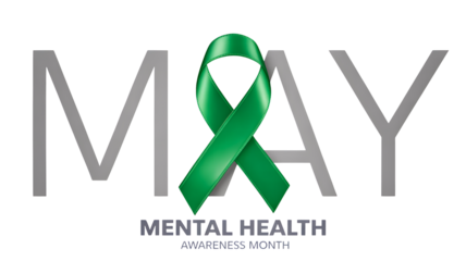 Green mental health awareness ribbon symbolizing support and hope for may mental health month isolated on transparent background