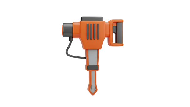 A yellow jackhammer isolated on transparent background is ready for demolition