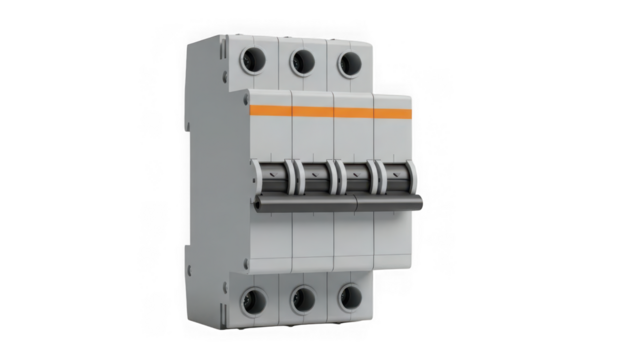 Circuit breaker electrical device on transparent background isolated on white