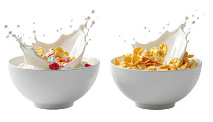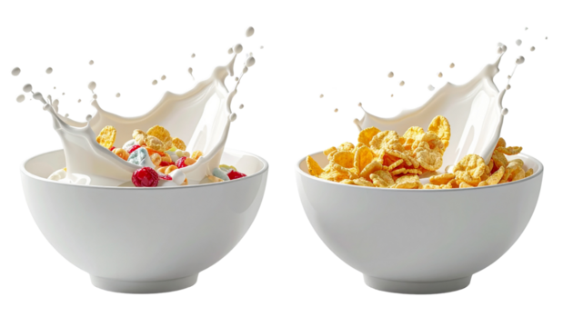 3D Breakfast Cereal Bowl Bundle with Milk Splash isolated on transparent background