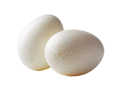 Two speckled, white eggs, close-up