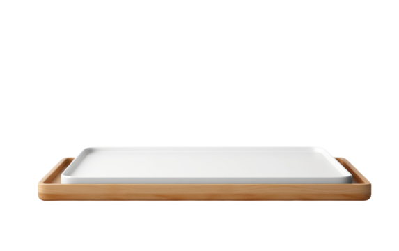 Empty bamboo tray isolated on transparent background, perfect for serving breakfast