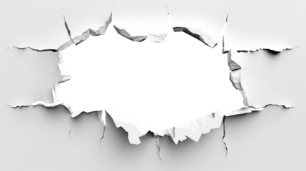 Hole Breaking Through White Wall Isolated on PNG Transparent Background