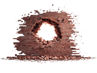 Broken brick wall hole light background texture design image 3d red dark on transparent background