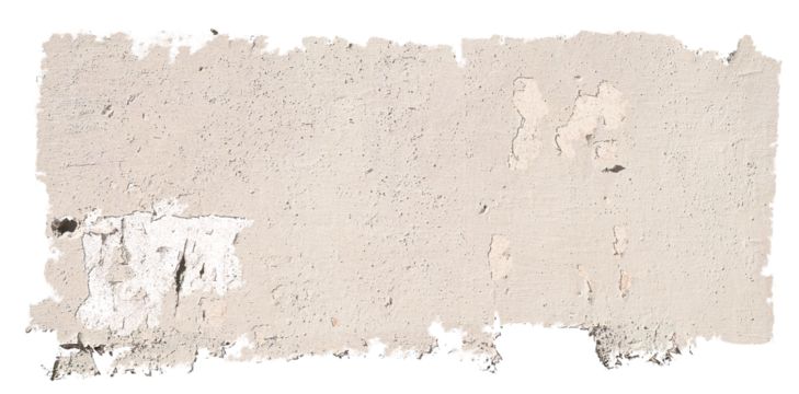 Ruined two-story concrete building with debris and broken walls on a white background destroyed house Cutout PNG isolated on a transparent background