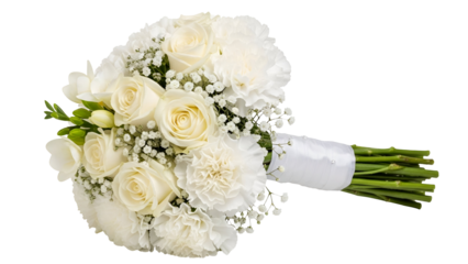 White roses and baby's breath flower decoration isolated on a Transparent background PNG