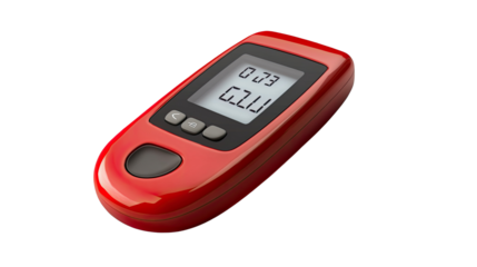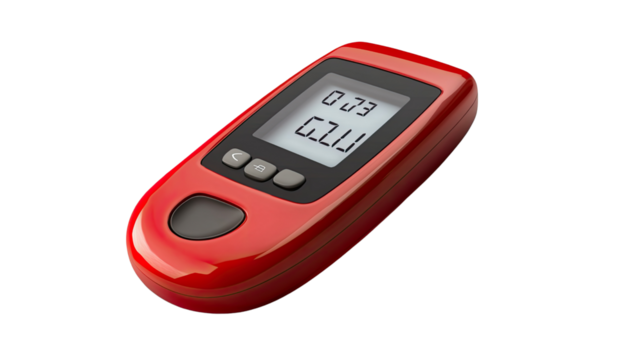 Digital Alcohol Tester: A sleek, red digital alcohol tester sits isolated, its display showing alcohol level readings, offering a symbol of personal responsibility and health awareness.