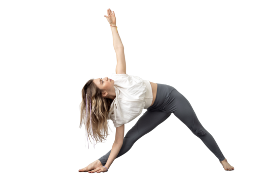 Female trainer Slim yoga exercise in Tracksuit, Transparent background, png.