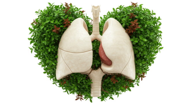 Isolated Healthy Lungs Surrounded by Green Leaves