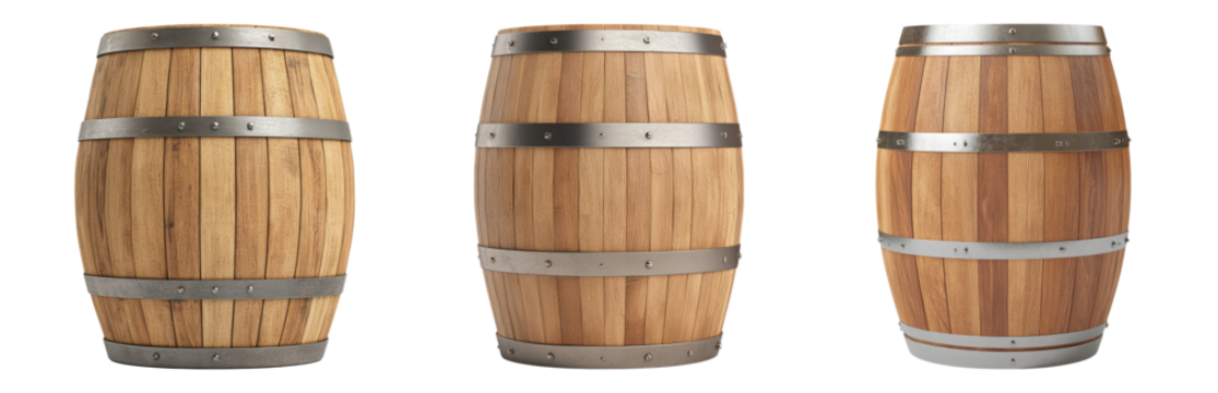Wooden Barrels for Storage and Decoration Isolated on transparent background