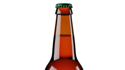 Amber beer bottle with green cap isolated PNG, refreshing drink in glass container for brewery and beverage concepts