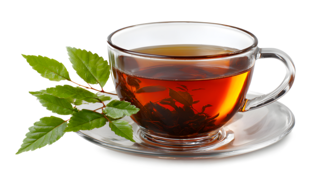 Tea brewing in transparent glass isolated on a white background