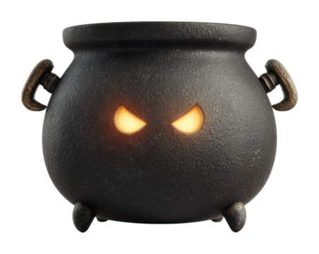 Dark mood halloween cauldron brewing potion decorative item isolated on transparent background