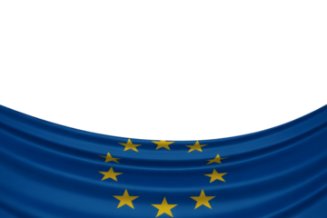 European Union flag gracefully drapes with copy space above, symbolizing unity and collaboration among member states with golden stars on blue silk