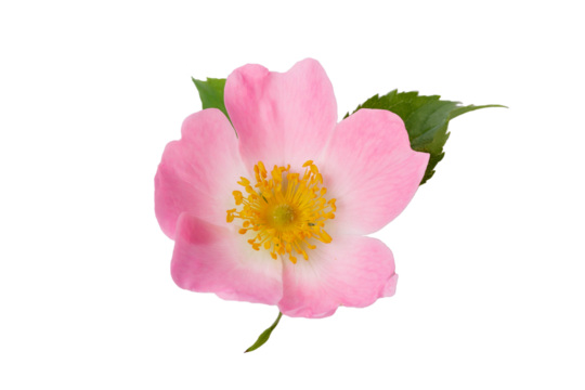 Rosehip flowers with leaf isolated on transparent background. Rosa rubiginosa (sweet briar, sweetbriar rose, sweet brier or eglantine).