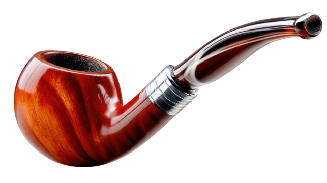 Polished Briar Tobacco Pipe on Transparent Background