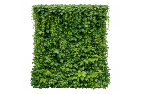 Green ivy wall with lush foliage creating a natural vertical garden background, transparent alpha channel