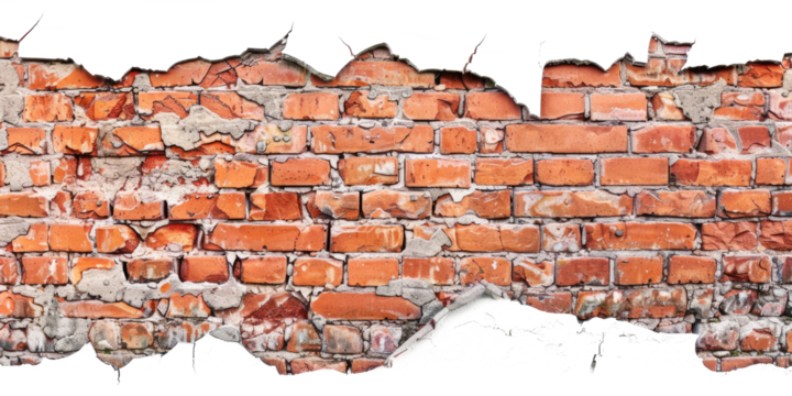 Decayed Brick Wall Fragment, Ruins and Rubble Isolated on Transparent Background