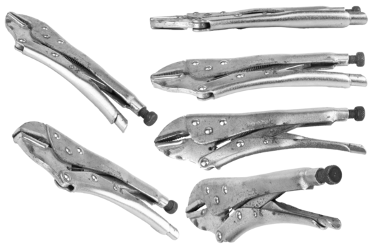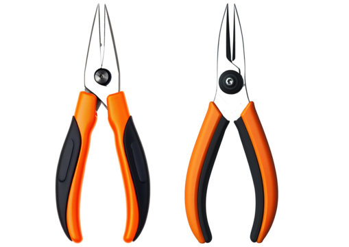 set of Orange hand pliers with black grips isolated on transparent background, cut out