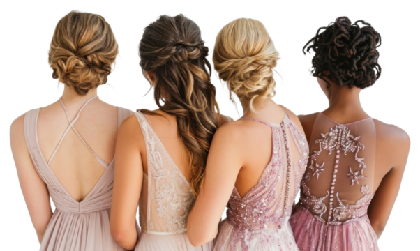 PNG A group of 4 diverse bridesmaid back wedding dress.
