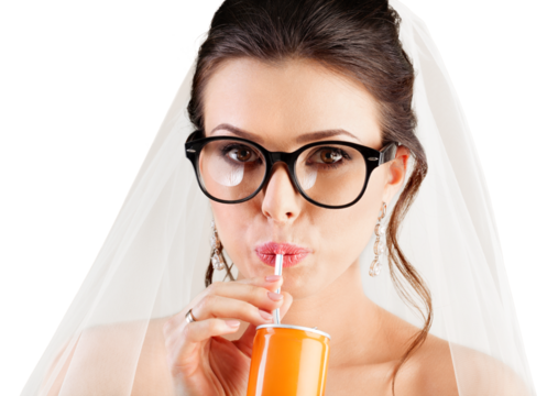 Wedding gown with plunging V-neckline and flowing chiffon skirt isolated on transparent background