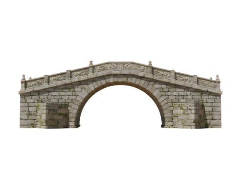 Vintage stone bridge featuring ornate balustrade, architectural detail against transparent backdrop, ideal for design rendering