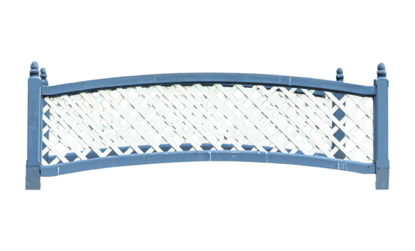 Cutout of an isolated old blue and white wooden bridge with the transparent png